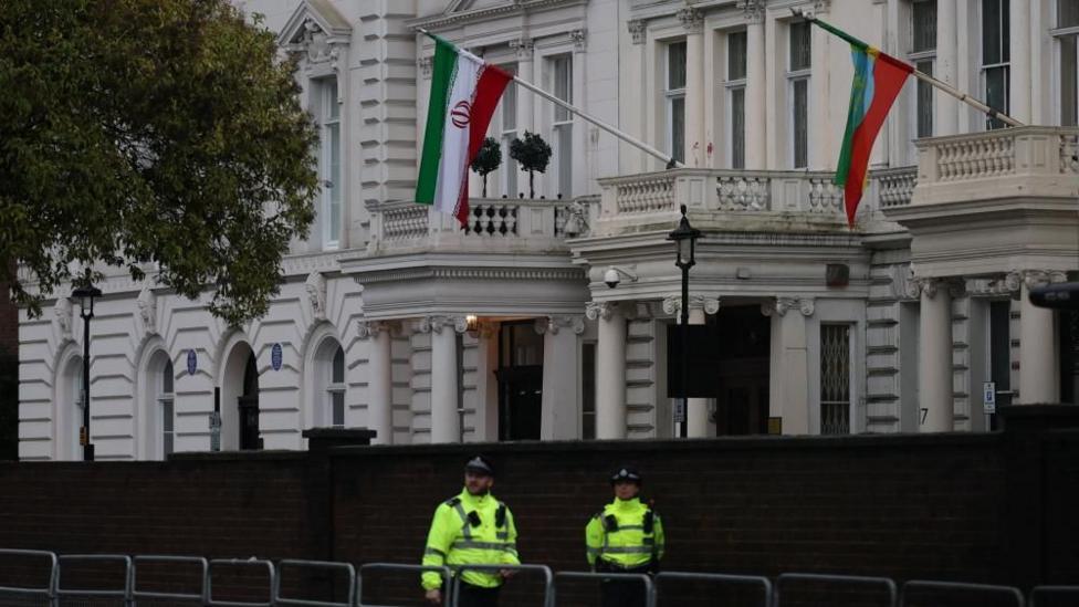 Several people are arrested after the protest outside the embassy in London.