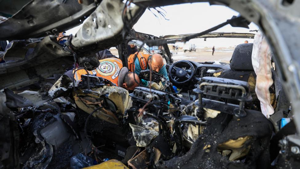 Four people were killed and multiple passers-by injured in the strike, an official from Gaza's Hamas-run civil defence agency told the BBC.