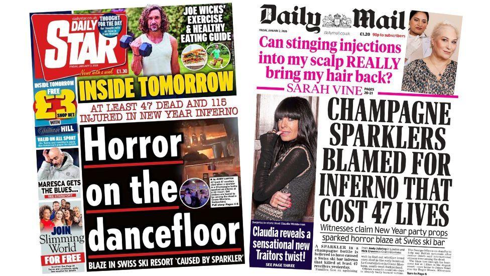 The fire at a Swiss ski resort bar which has killed dozens dominates Friday's front pages.