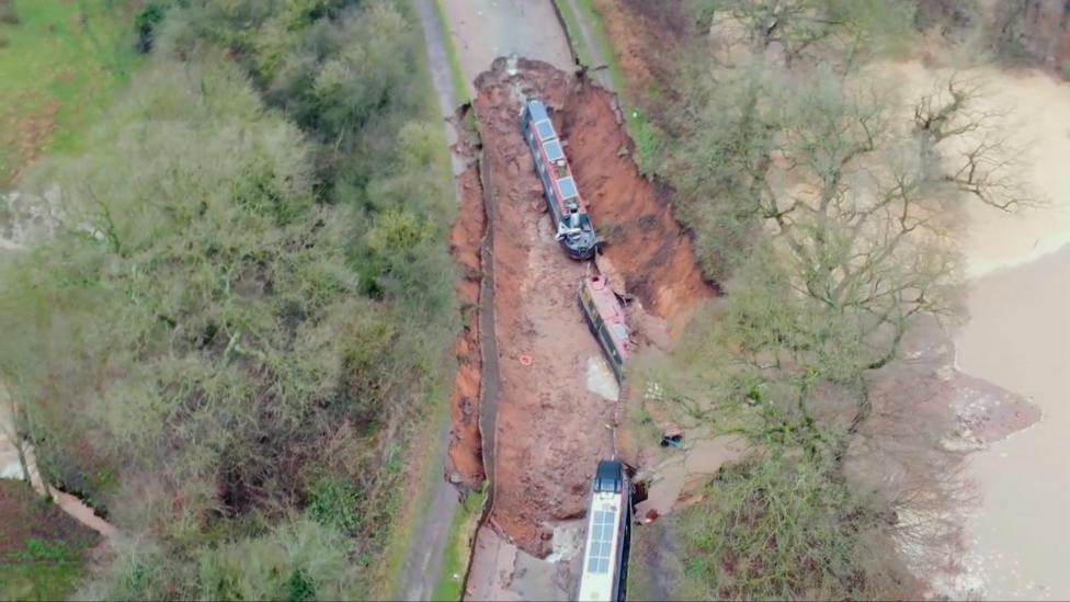 Aerial footage appears to show the structural integrity of a stretch of waterway in Whitchurch has given way.